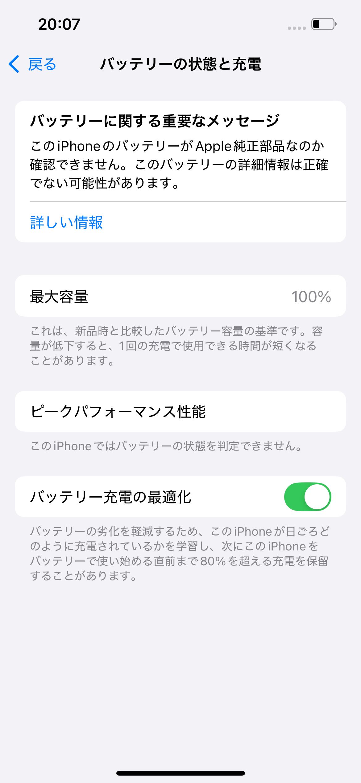 • iPhoneの仕様上、パーツ交換が行われると「不明な部品」「このiPhoneのバッテリーを識別できません」などの表示が出ることがあります。